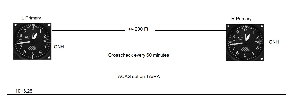 By setting 1013.25 the primary altimeters should agree within 200 feet